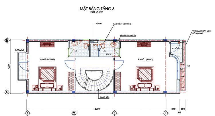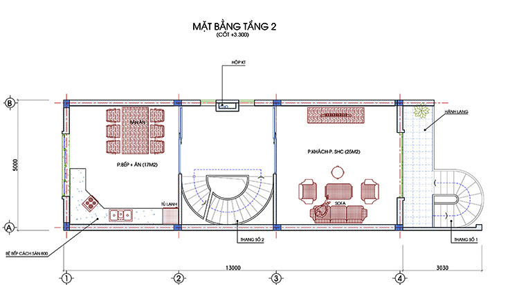 Diện tích xây dựng: 65m2 ( 5mx13m )